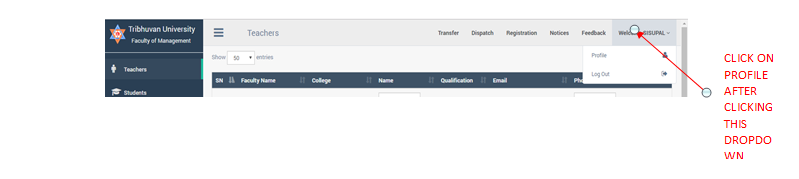 First go to top-right of your admin dashboard you will see welcome dropdown.