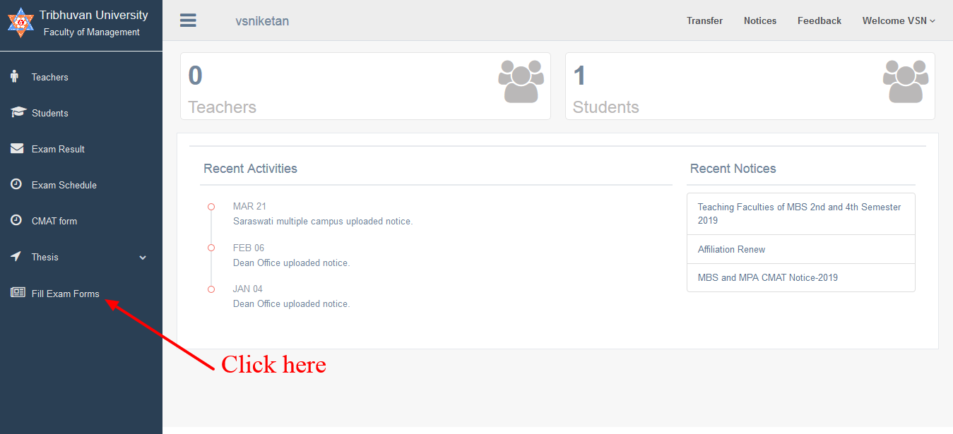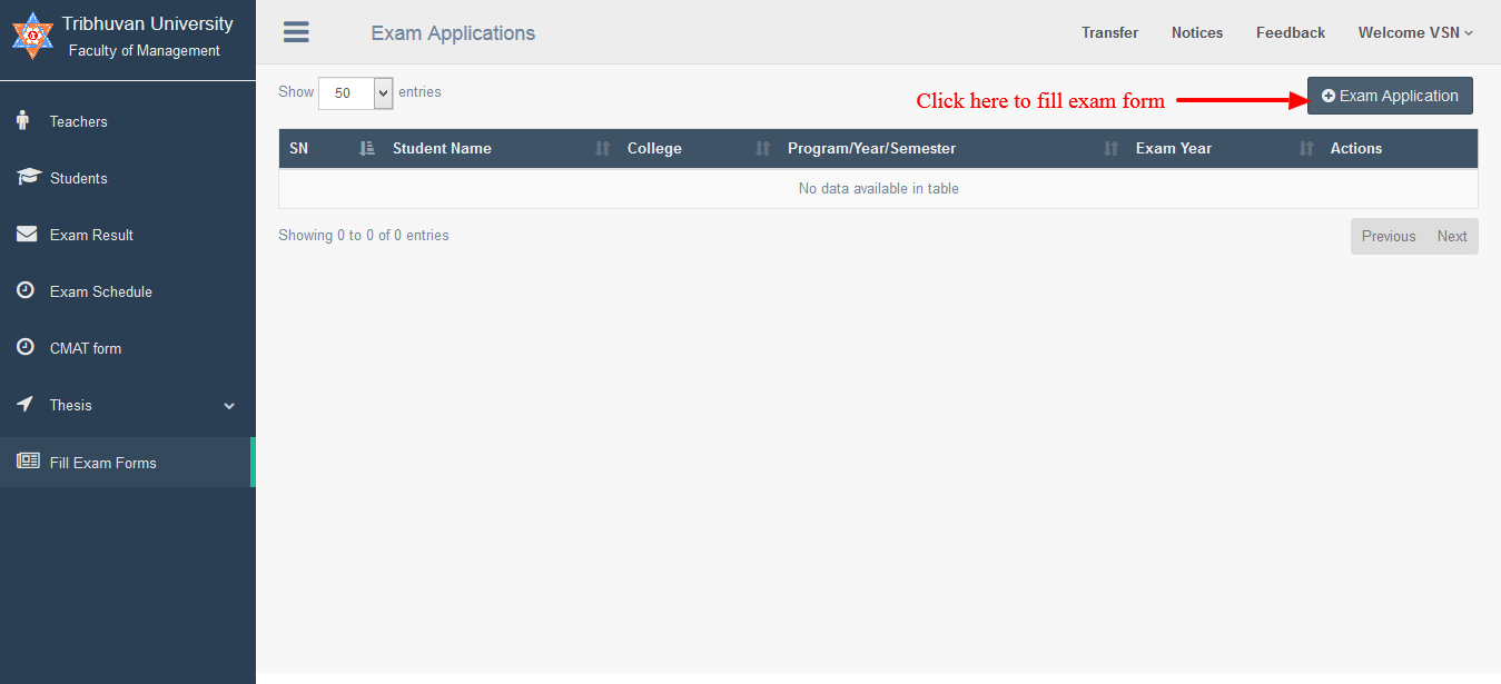 Click "Fill Exam Forms" button on admin dashboard.