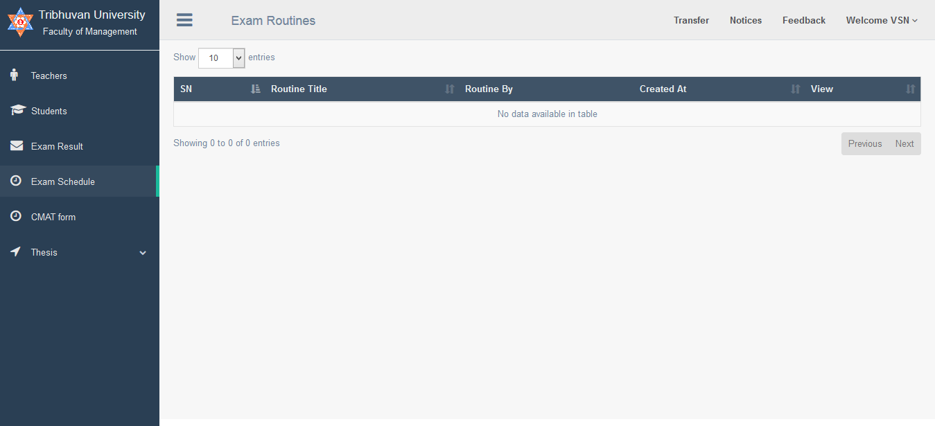 In this panel, Exam Schedule are added, updated or deleted by deans office for selected colleges, and it done by the Exam Admin.